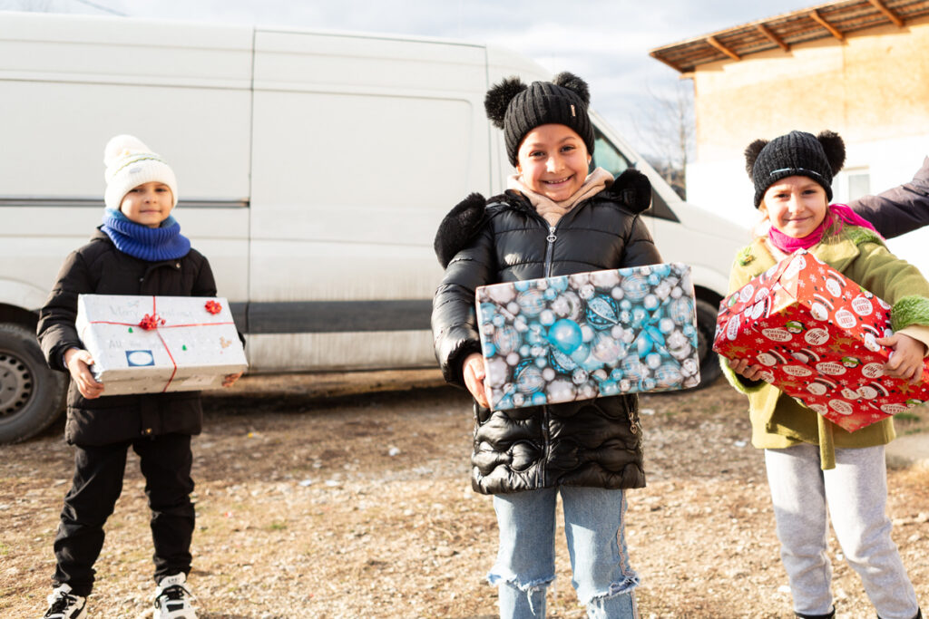 Diese Kartons werden weihnachtlich verpackt, mit den vorgesehenen Aufklebern beklebt und bis zum Abholtermin in der Schule gesammelt. Dafür kann ein eigener Sammeltisch in der Aula oder einem separaten Raum dienen. Oder Kinder, die mitmachen wollen, bringen Artikel mit, die sie weiterschenken wollen und packen in der Schule im Rahmen einer Unterrichtsstunde gemeinsam die Packerl für die rumänischen Kinder.